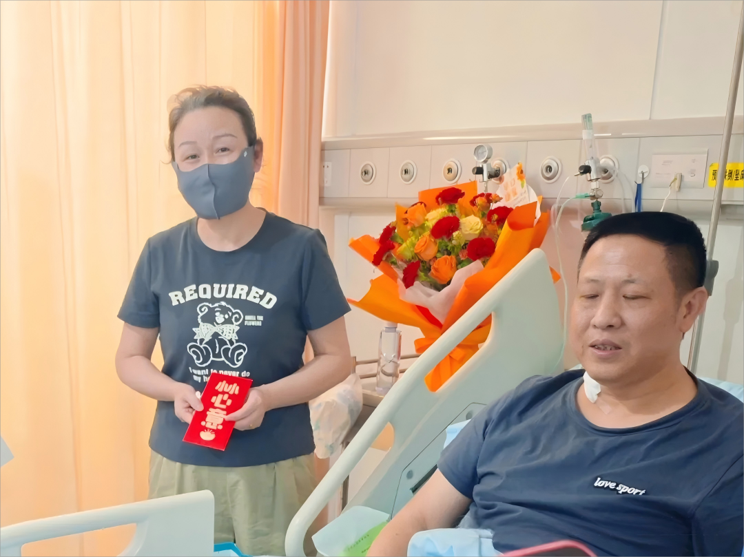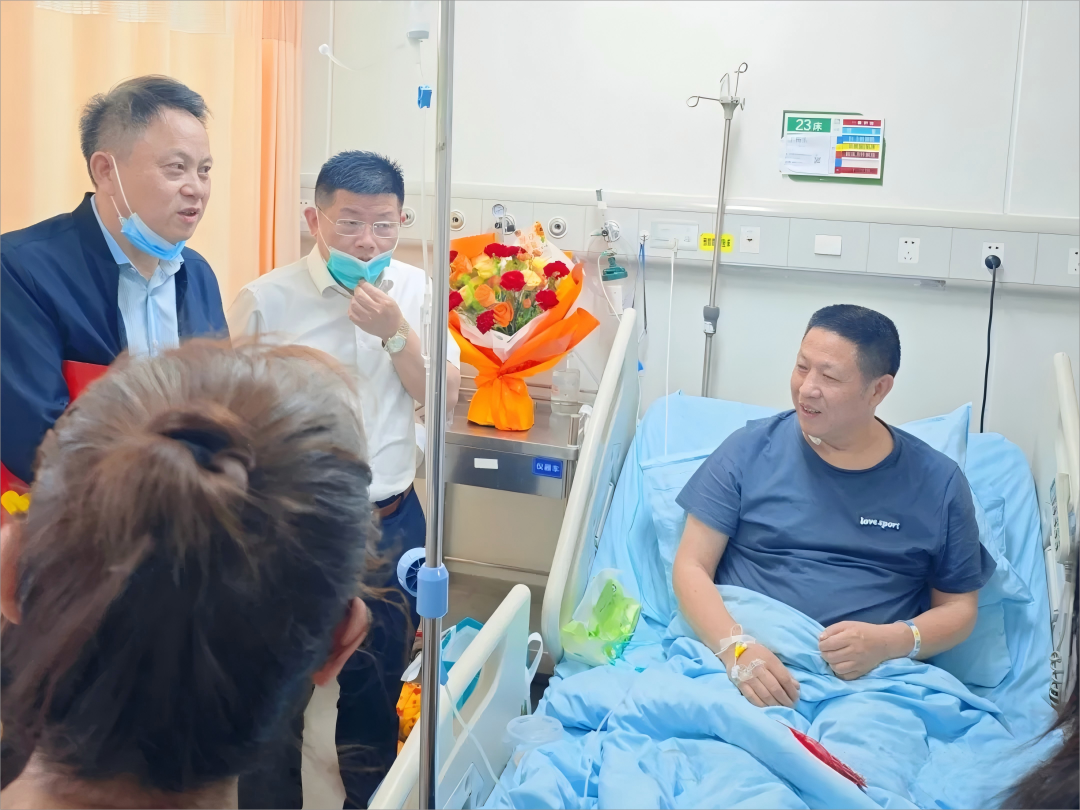 上午10时许,志愿者队伍在医院汇合,安石公益基金会"赣江之光"项目发起人之一黄小云先生带领团队将装有善款的红包郑重地交到丁先生手中,并说道:“这是我们的一点心意,希望您早日康复!”,江西汇爱心群的志愿者们则把鲜花插在床头的花瓶中,果篮放在触手可及的位置。江西汇的卢处亲切地说道:“这些水果很新鲜,您要记得多吃。”这份来自家乡的浓浓情谊,让病床上的丁先生感动不已。