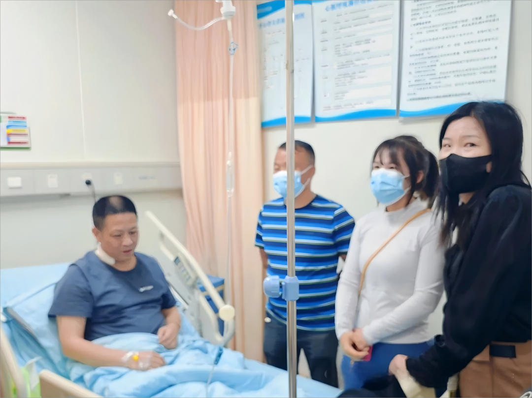 慰问过程中,大家详细了解丁先生的治疗进展和生活需求,并表达了大家的关心。丁先生表示:"虽然身在异乡,但感受到浓浓的家乡情谊。这次经历让我深刻体会到健康的重要性,康复后一定加强锻炼,也会积极参与公益活动,回馈社会。"他还特别叮嘱志愿者们要注意身体,保持良好的生活习惯。