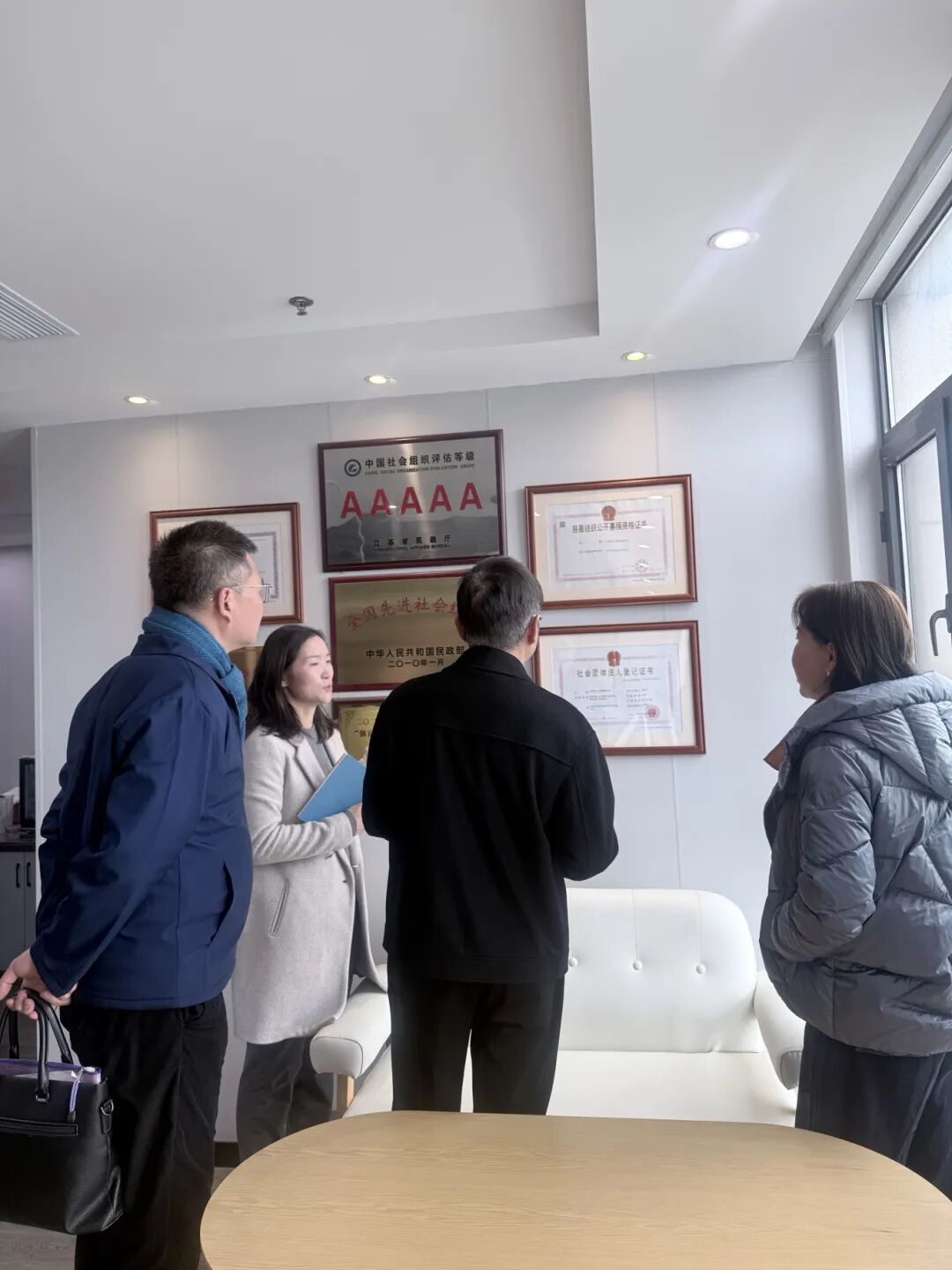 在灵山慈善基金会秘书长李秋瑾的陪同与讲解下,我方参观了灵山慈善基金会办公场所。现场展示的 “AAAAA 级社会组织”“全国先进社会组织” 等多项荣誉,充分彰显了基金会专业的运营能力与高度的社会公信力。